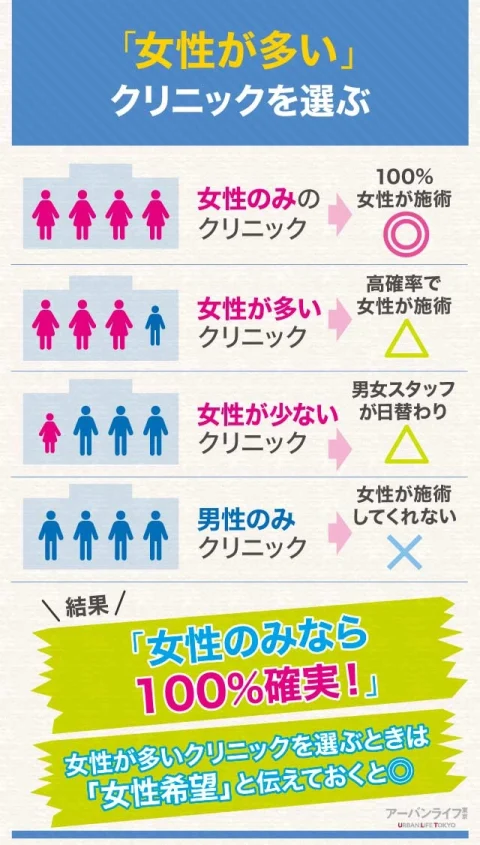 東京都内には、メンズVIO脱毛の施術を女性が行うクリニックやサロンが多数あります。