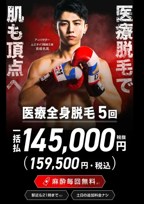 ▼詳しく見る |  |  | 95,000円 | ー | 330,600円 | 全部位 無料 | 当日予約OK! 全身脱毛なら初回割20%OFF +学割1万円OFF併用OK 今ならヒゲ3回10,000円 | 12院 |